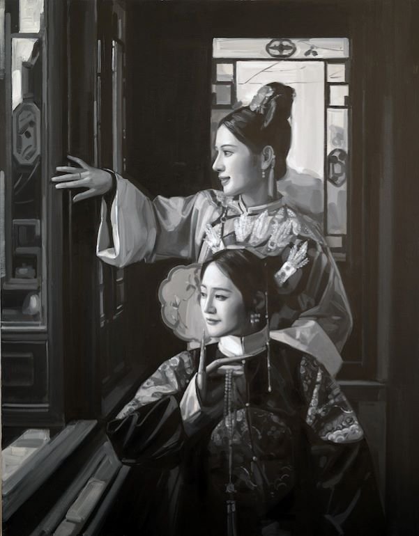 Timeless elegance in black and white — Feeding My Gentle Giant captures the grace and joy of Qing dynasty beauty.